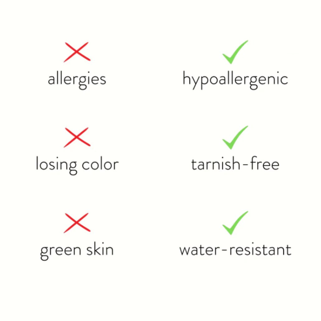 Crafted from waterproof stainless steel, you’ll never have to worry about your jewelry fading or tarnishing again.